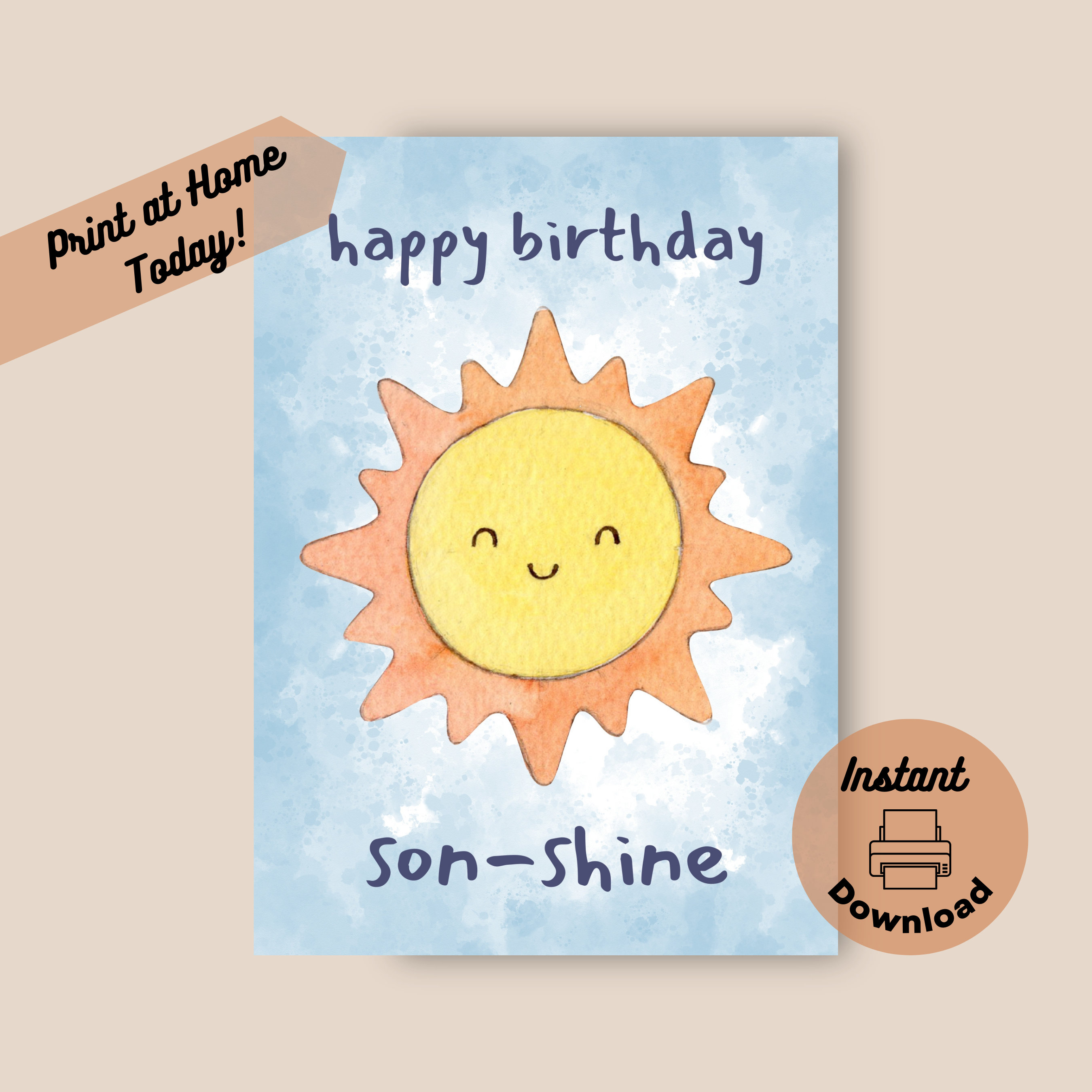 Printable Son Birthday Card Instant Download Print at Home Etsy