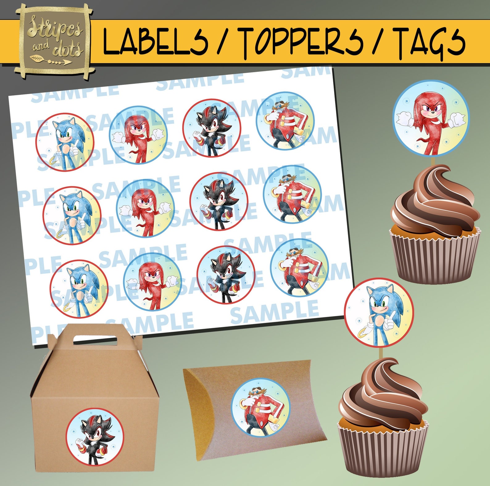 Printable Sonic Cupcake Topperssonic Stickerssonic Cupcake Etsy