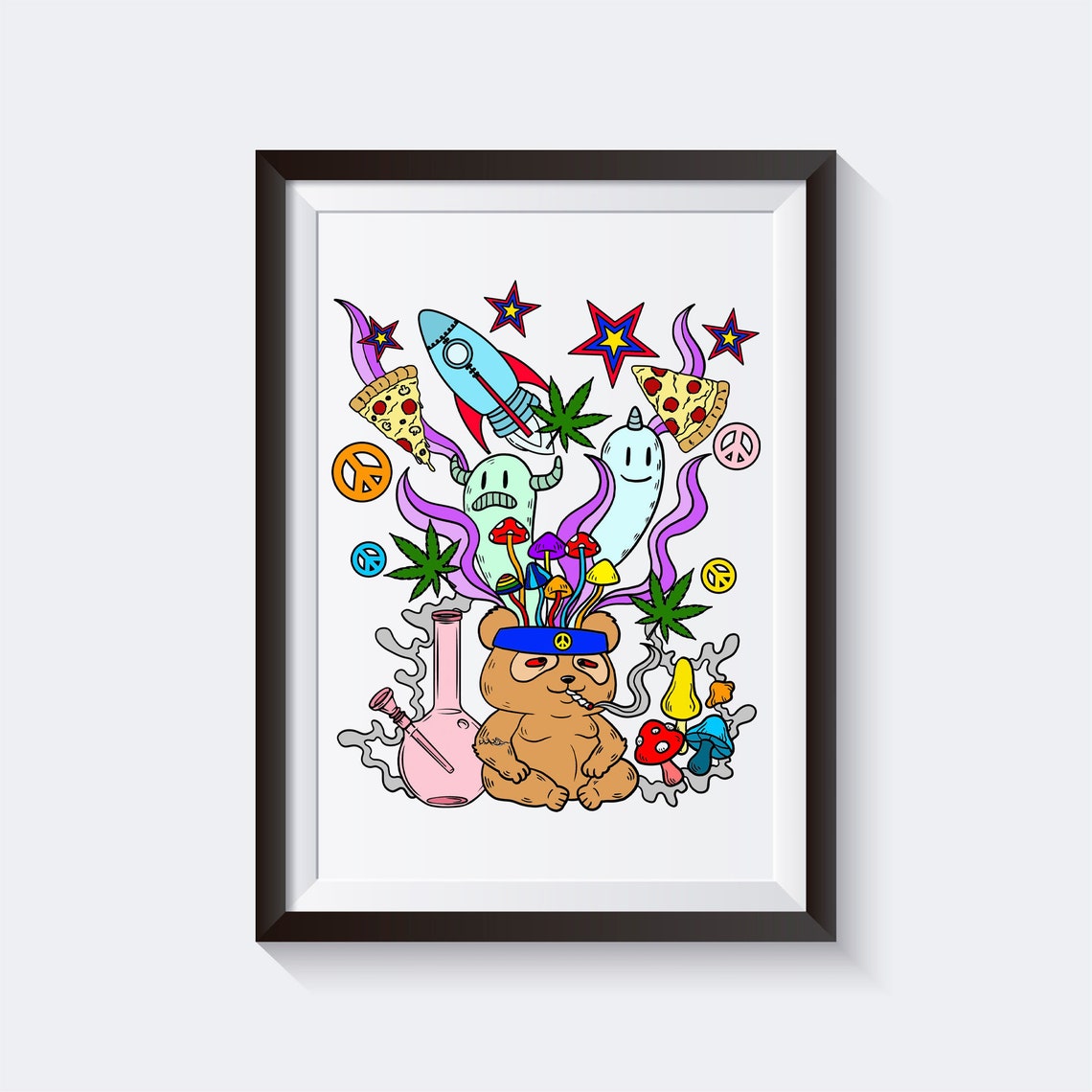 Trippy Hippie Bear Coloring Page Trippy Stoner Printable 55% OFF