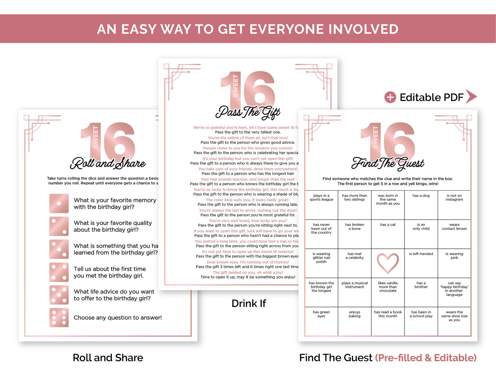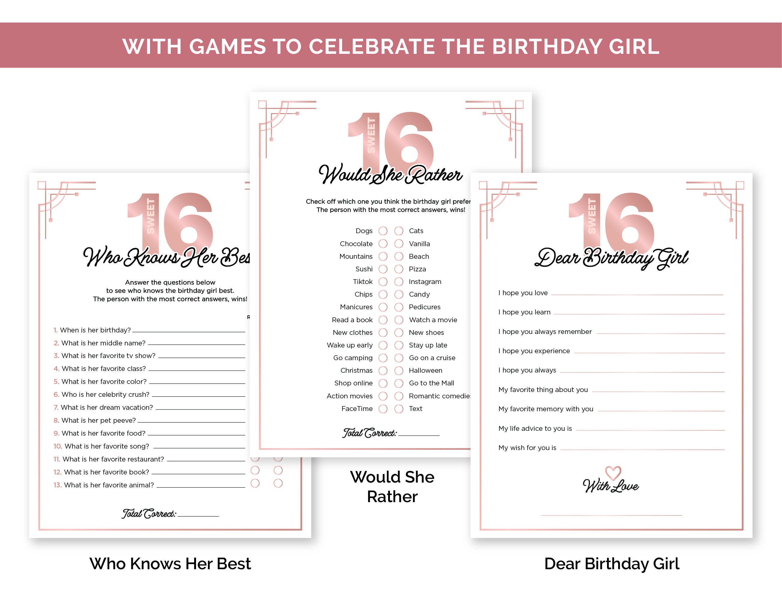 Sweet 16 Party Games Bundle Rose Gold Printable Worksheets Library