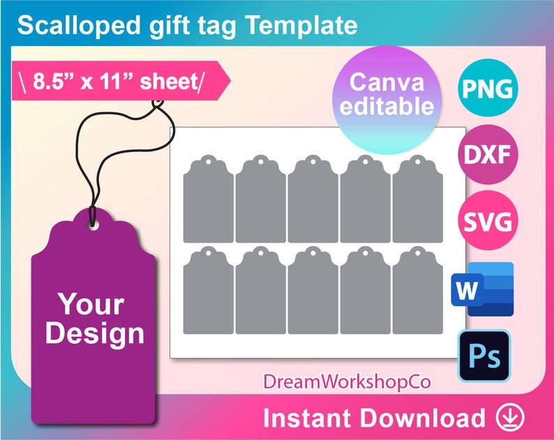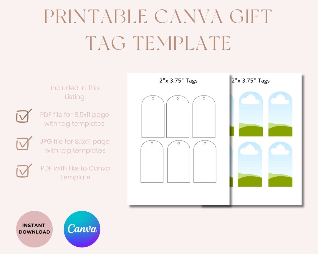 Printable Canva Tag Template Shapes for ~2x4 Inch Tags Hang Tag
