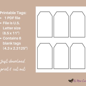 Printable Hang Tag Template Approx 2 X 3 5 / Blank Gift Tags / Create