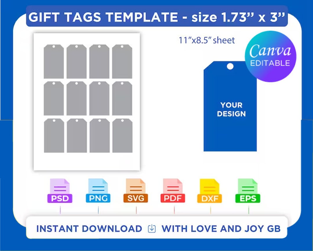 Gift Tag Template Wedding Tag Template Shipping Tag Etsy