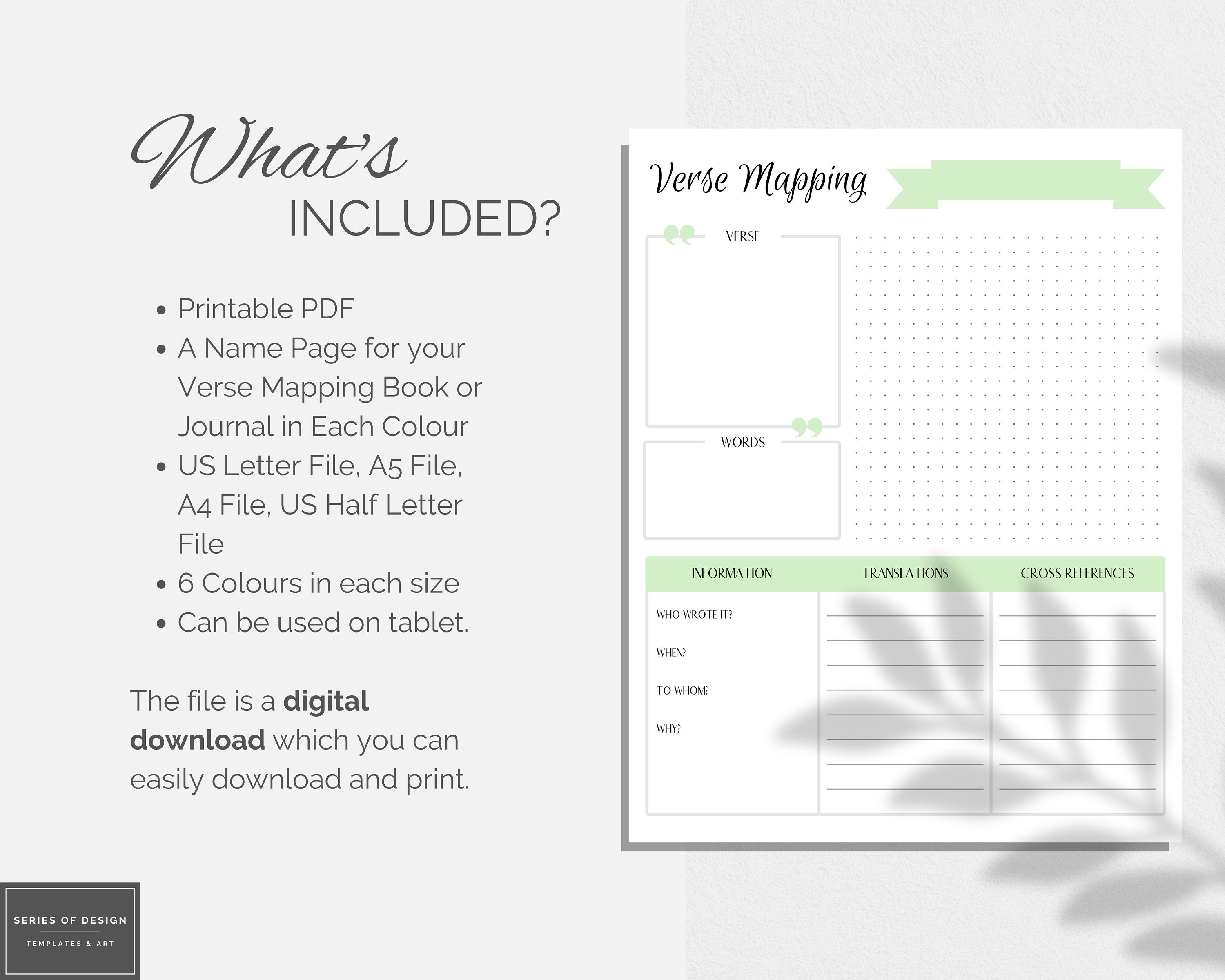 Printable Bible Verse Mapping Template Instant Download PDF Plan