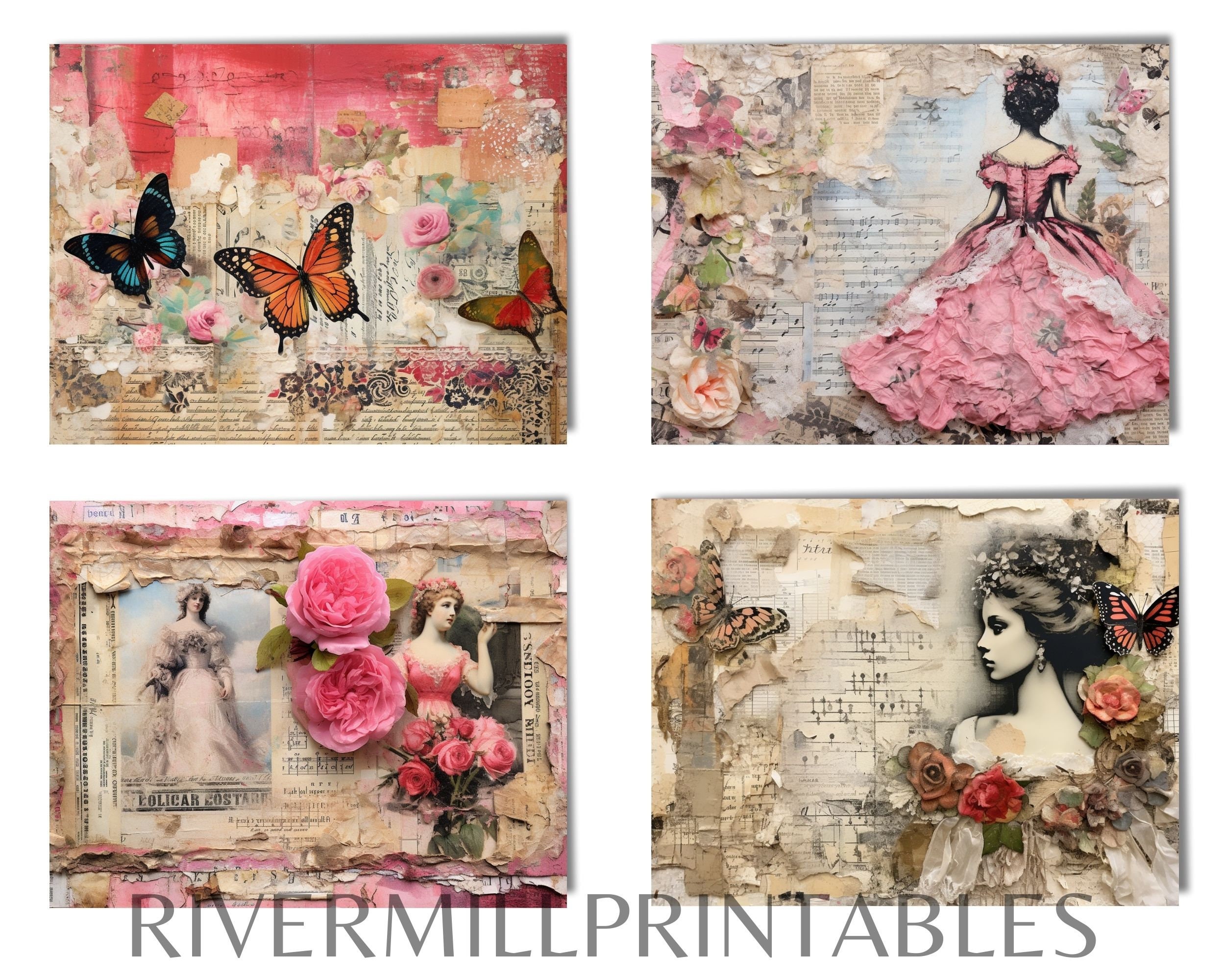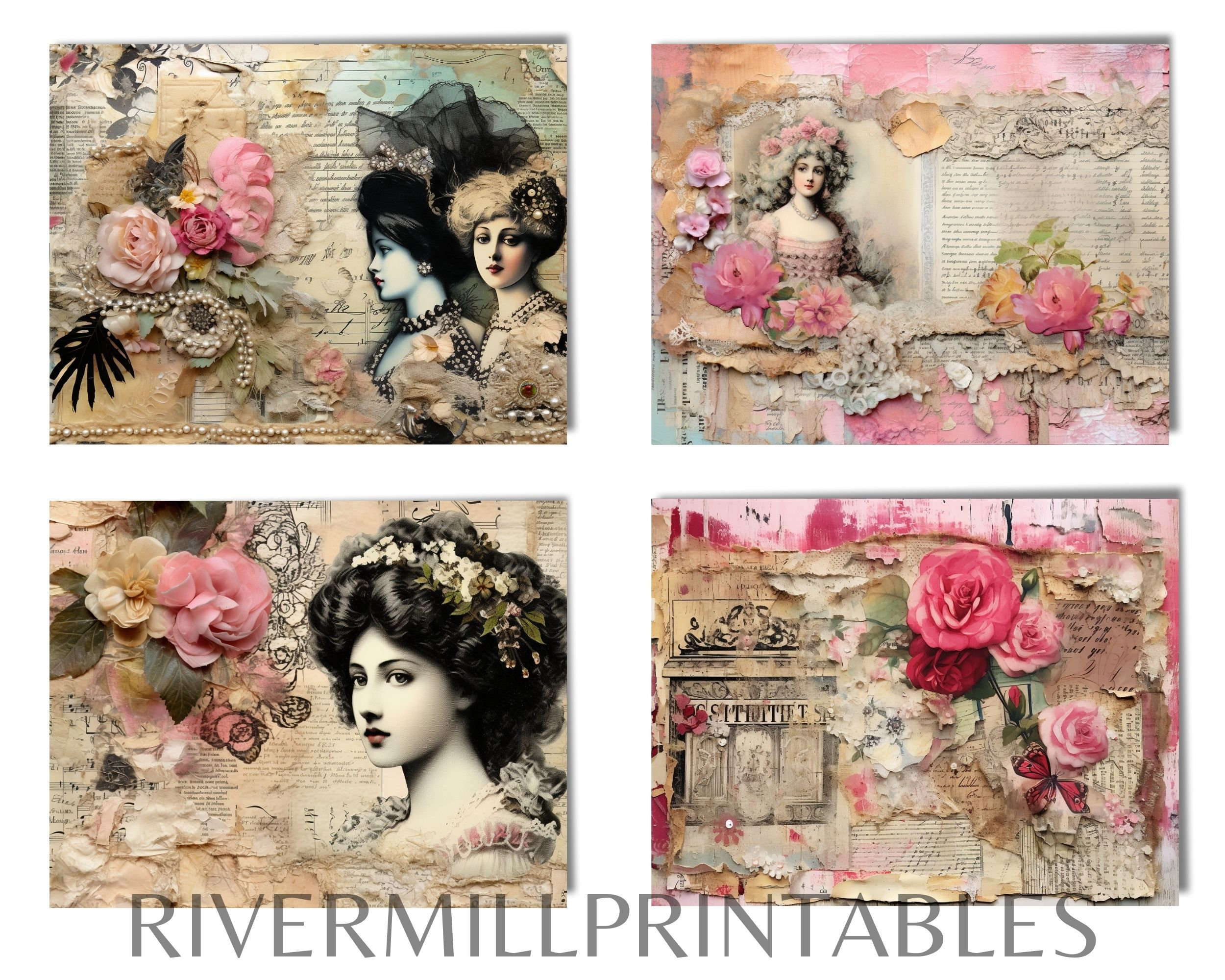 12 Victorian Collage Printable Pages 300DPI JPG Files Junk Journal