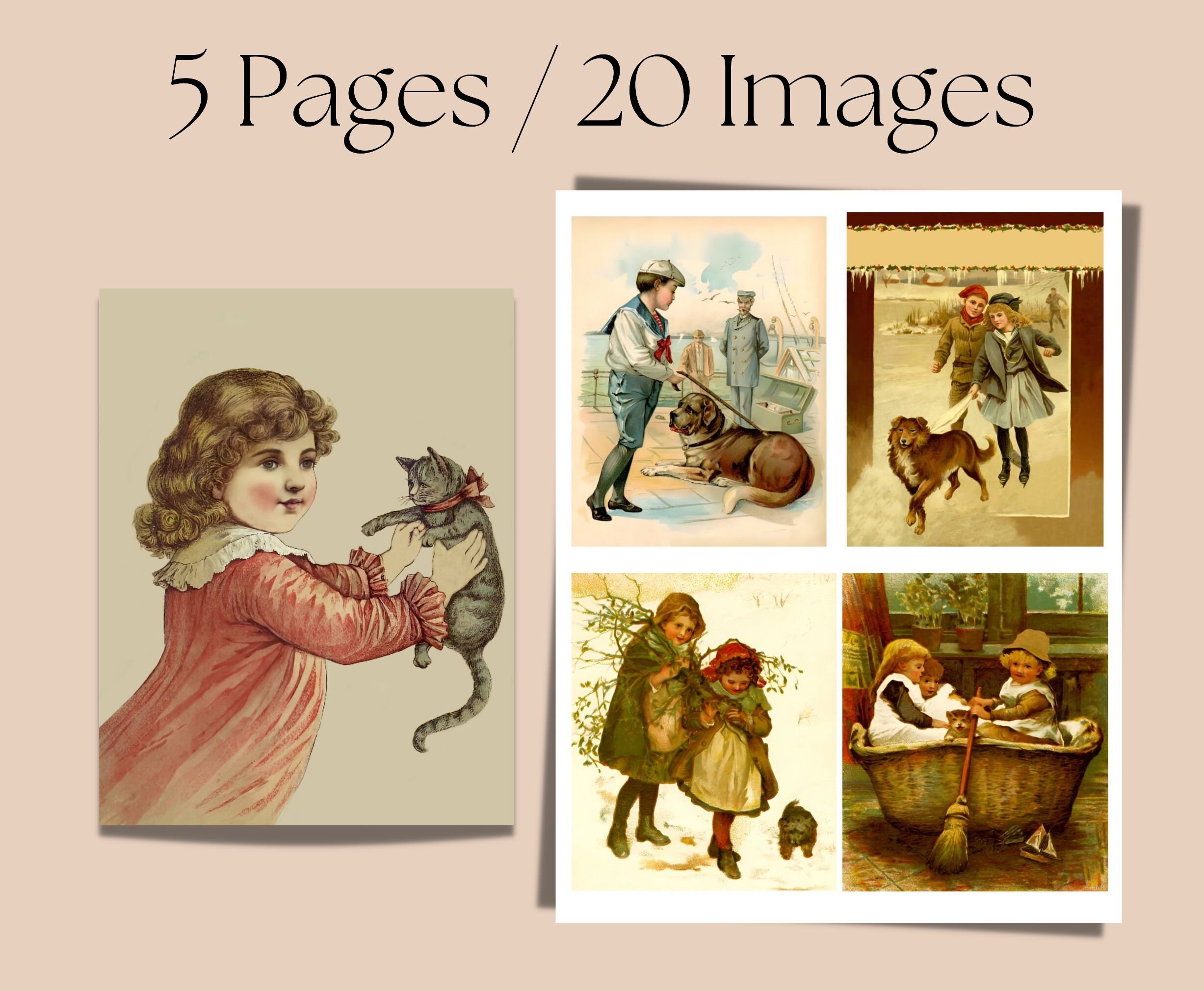 Printable Victorian Children and Animals Collage Sheets Vintage
