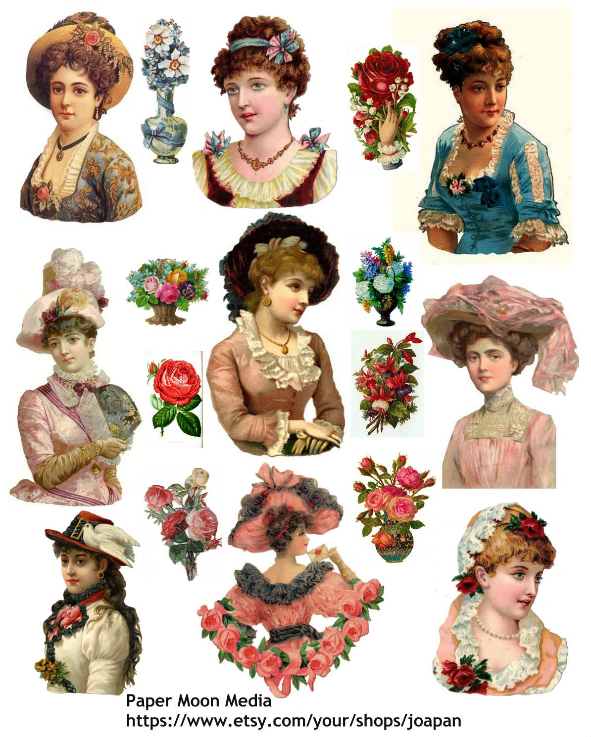 Printable Vintage Victorian Ladies Collage Sheet Instant Etsy