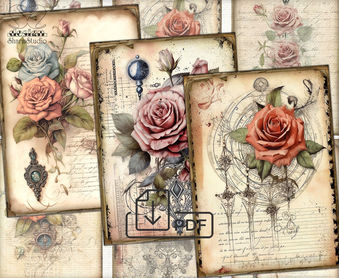 Free Shabby Chic Rose Cards for Art Junk Journals Instant Download