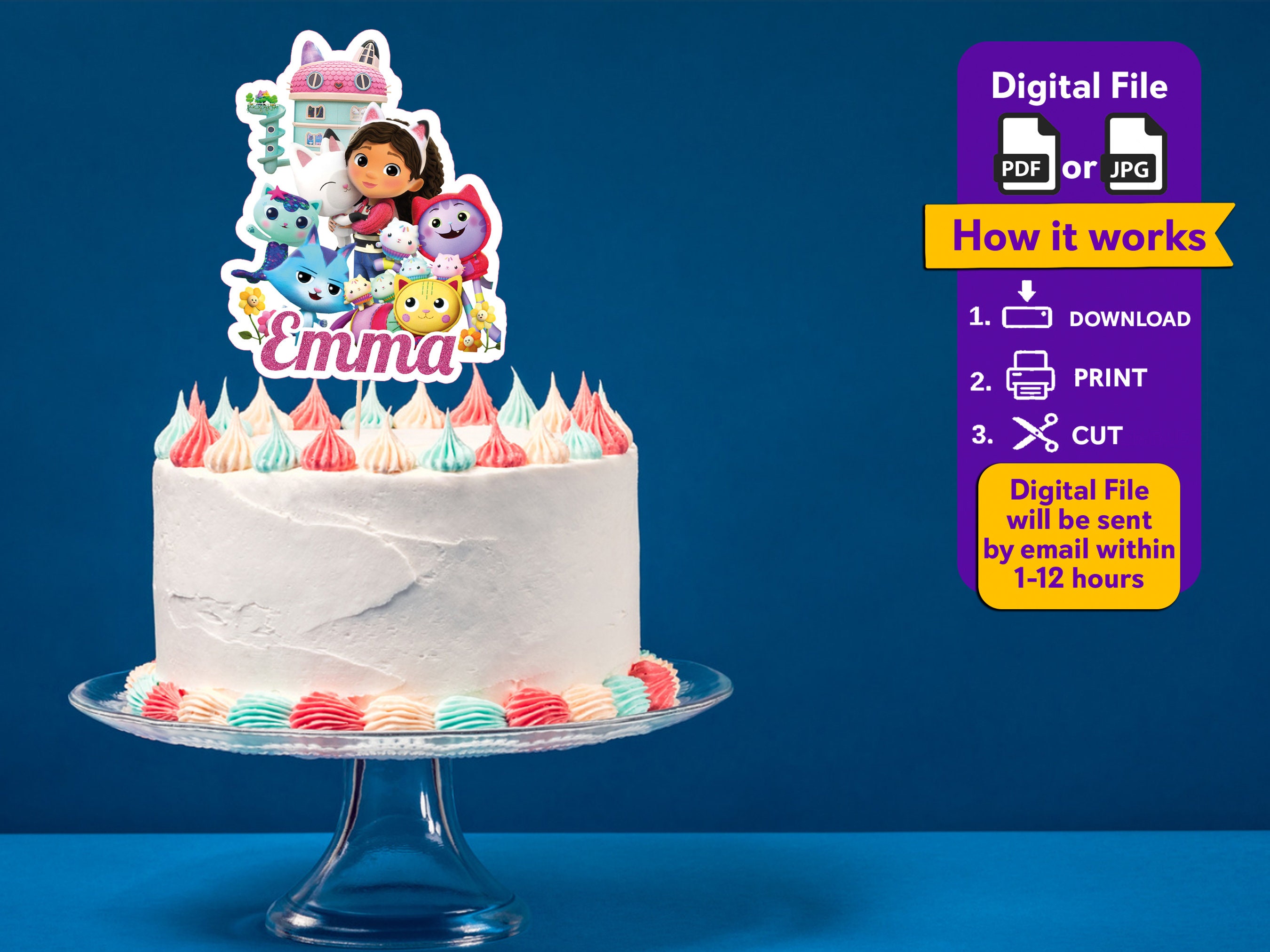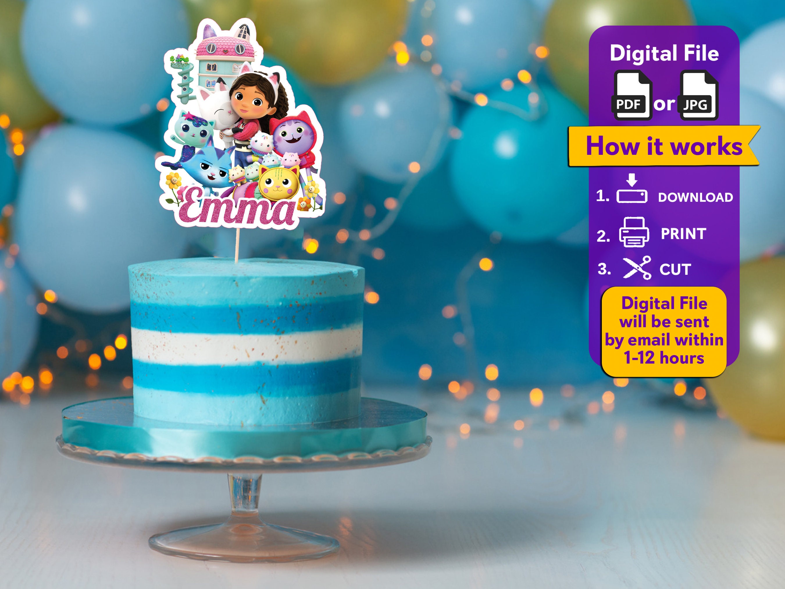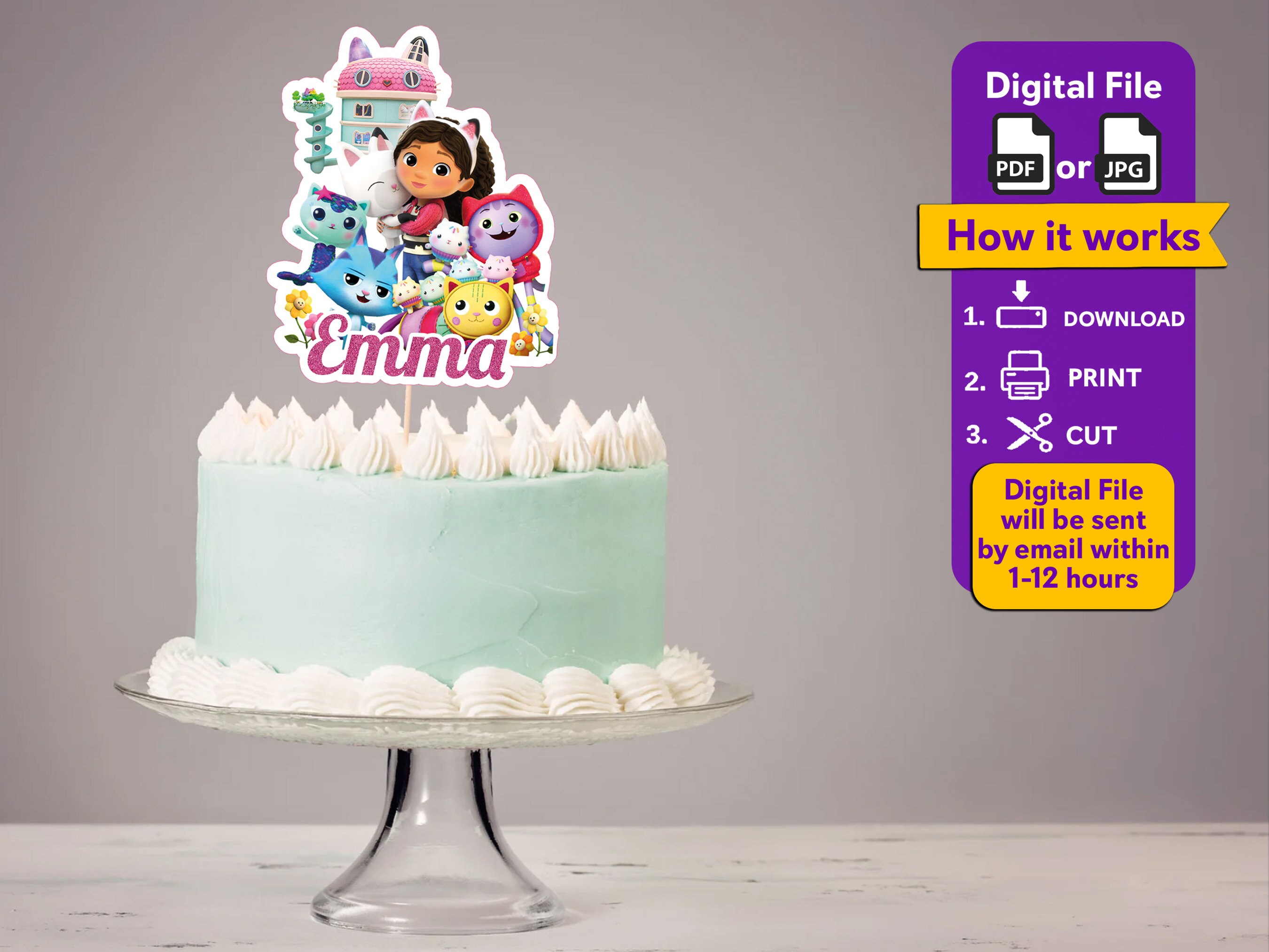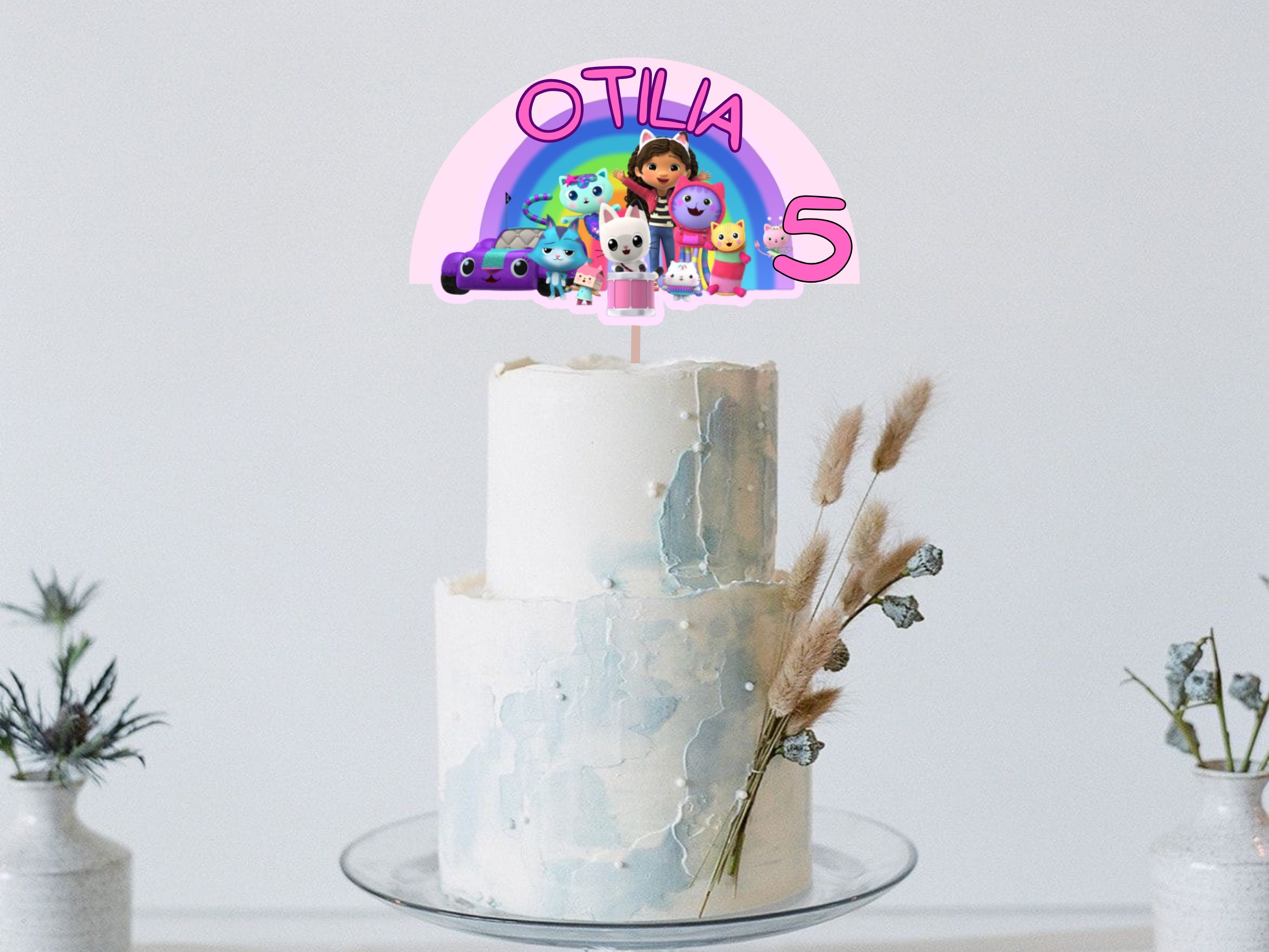 Printable Gabby Dollhouse Cake Topper File With Personalised Name and