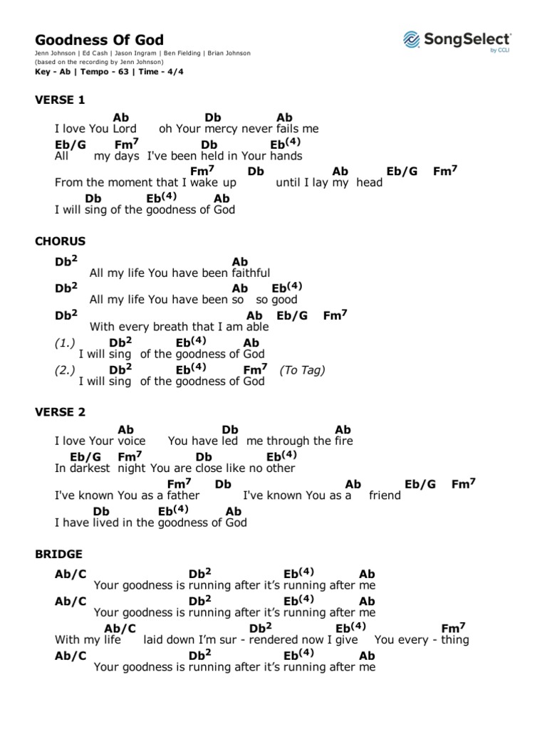 Goodness of God Chord Chart PDF Download Loop Community