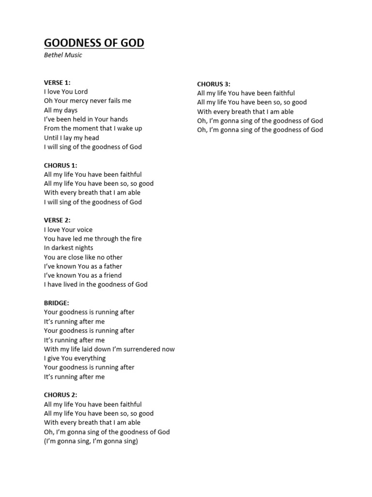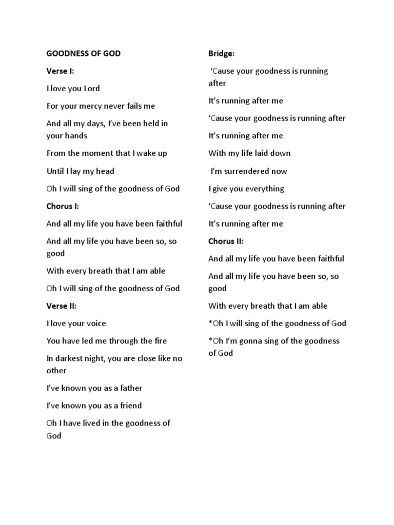Here are some of the images for Goodness Of God Lyrics Printable that we found in our website database.