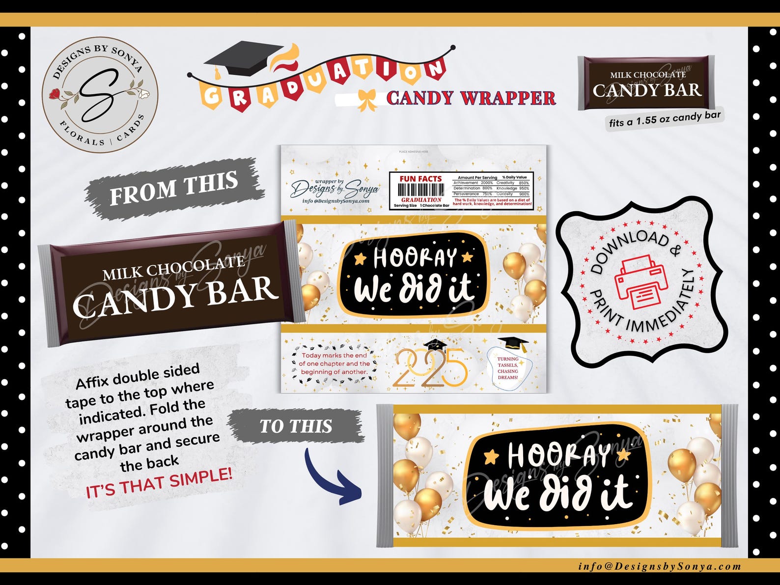 Graduation Candy Bar Wrapper Black and Gold Chocolate Wrappers Class