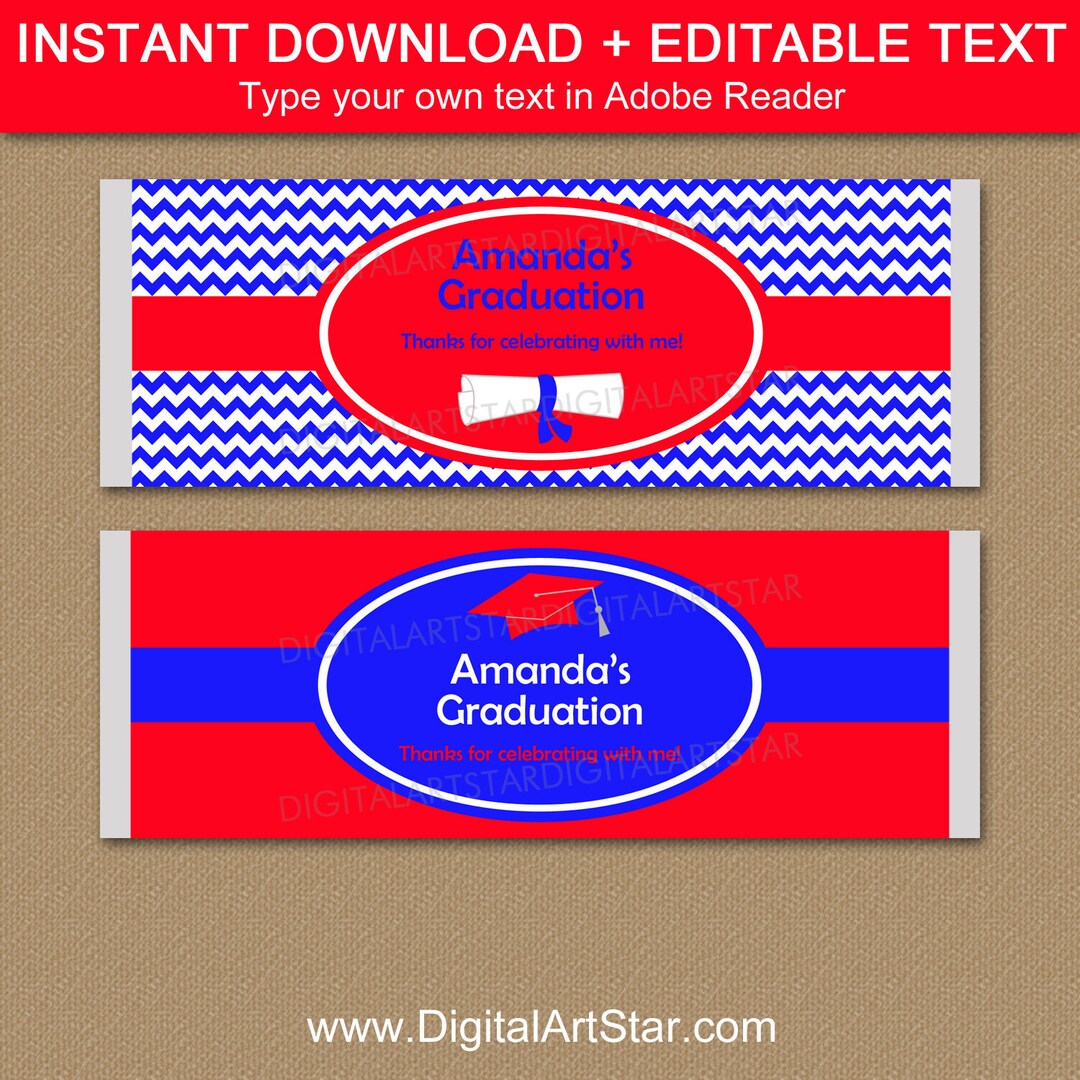 Graduation Candy Bar Wrapper Template Red and Blue Graduation Candy