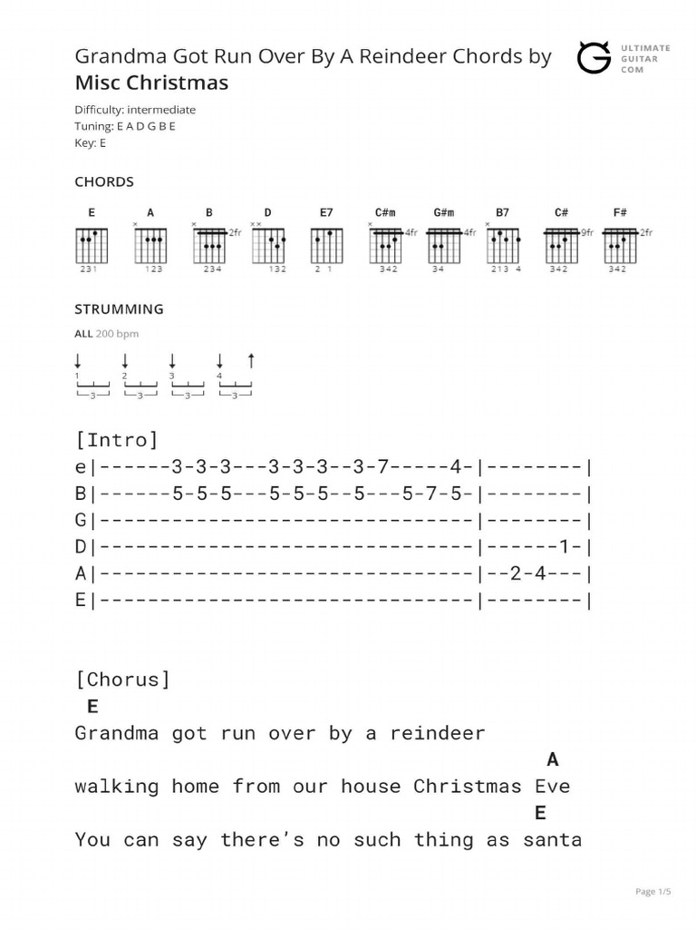GRANDMA GOT RUN OVER BY A REINDEER Ukulele Tabs by Misc Christmas on