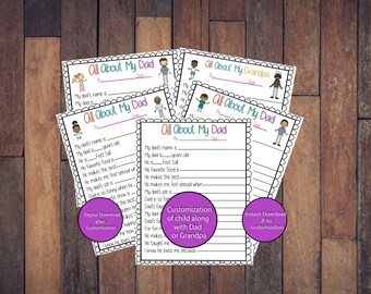 All About Dad Questionnaire Printable Fill in the Blank Printable for