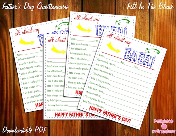 All About My Baba Father #39 s Day Questionnaire Instant Downloadable PDF