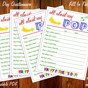 All About My Pop Father #39 s Day Keepsake Questionnaire Instant