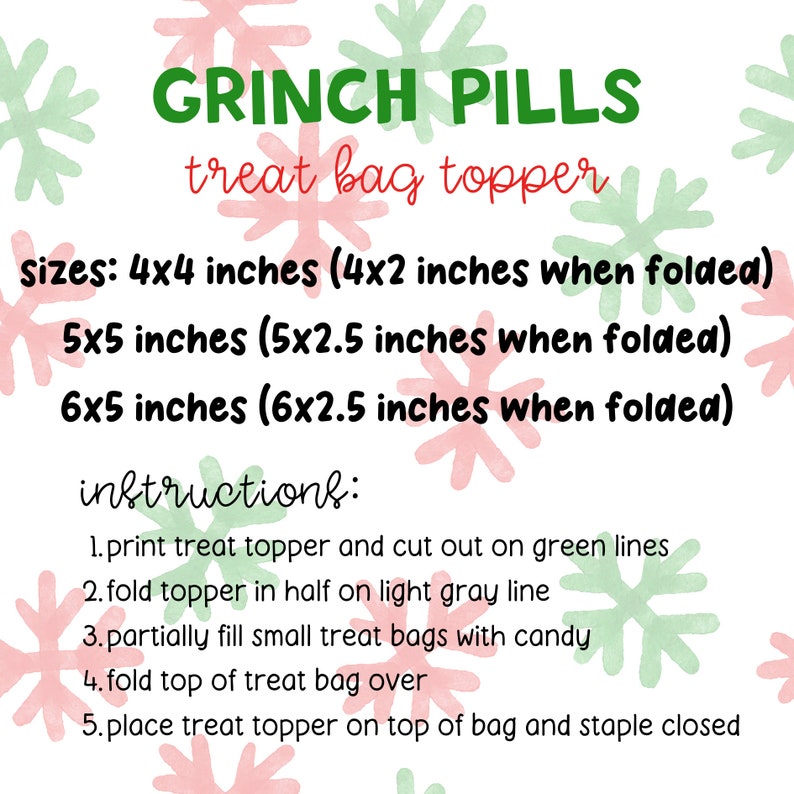 Grinch Pills Printable Treat Bag Topper Christmas Candy Bag Etsy