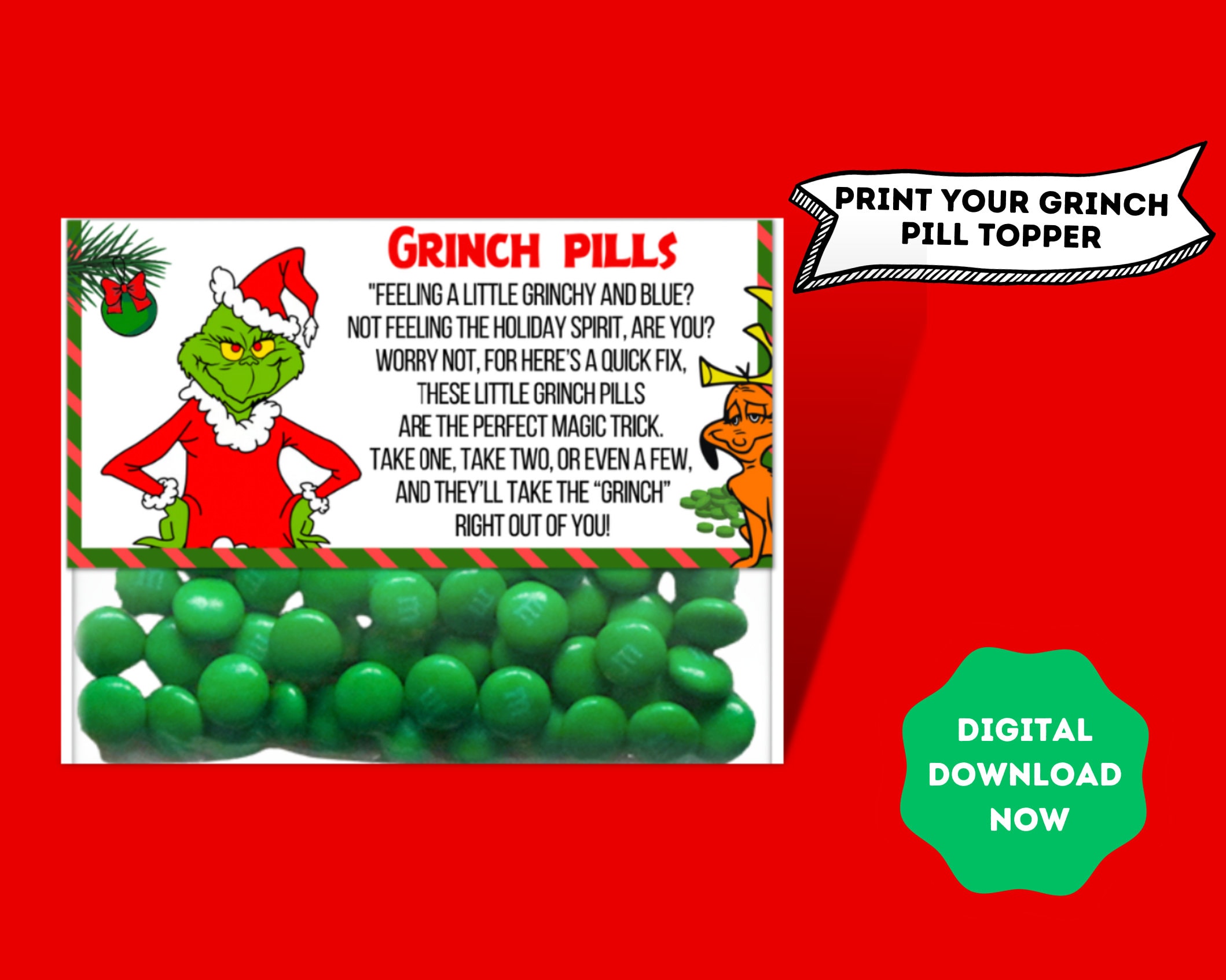 Grinch Pills Candy Bag Topper Printable DIY Party Mom