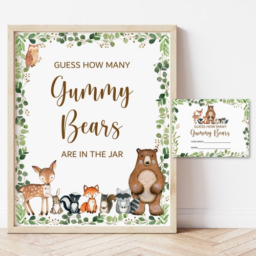 Guess How Many Gummy Bears Woodland Baby Shower Games Etsy
