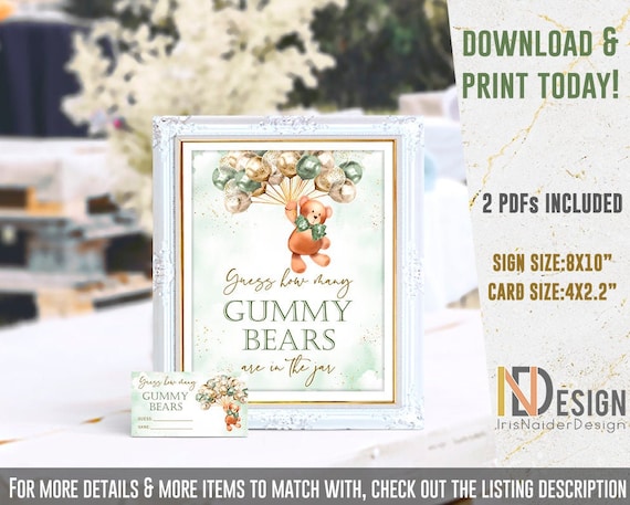 PRINTABLE Guess How Many Gummy Bears sign Bearly Wait Baby Etsy