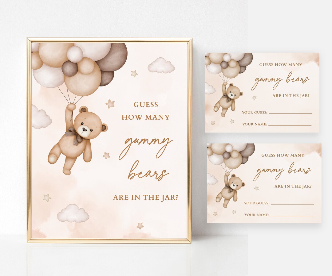 Beige Teddy Bear Guess How Many Gummy Bears Game Sign and Card Teddy