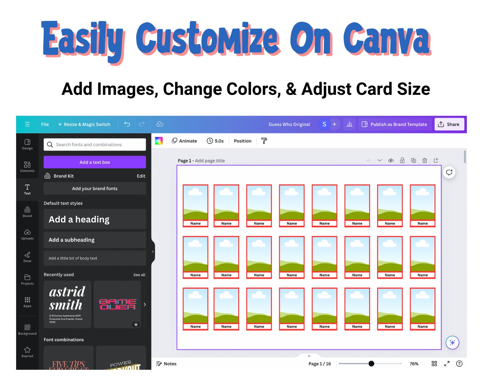 Printable Customizable Guess Who Digital Download Etsy