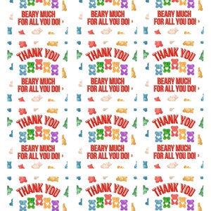 Editable Teacher Appreciation Tags Thank You Beary Much Gummy Bears
