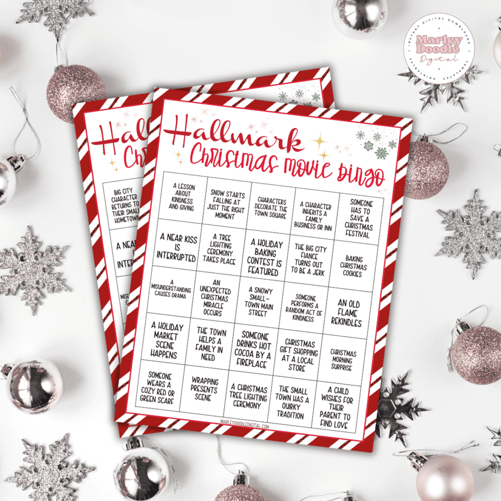 Free Printable Hallmark Christmas Movie Bingo Cards Marley Doodle Digital