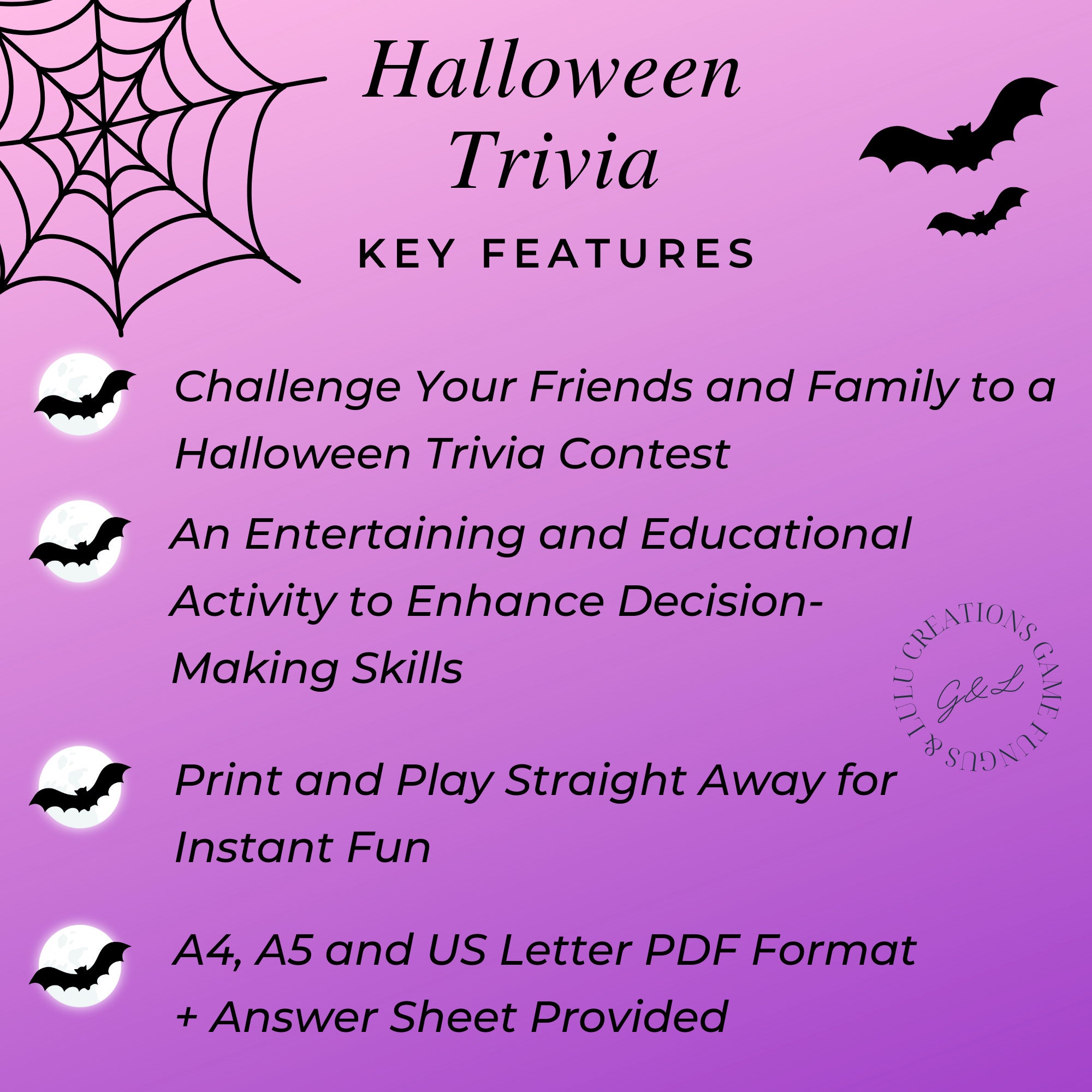 Halloween Kids Trivia Printable Digital Download Fun Party Game for