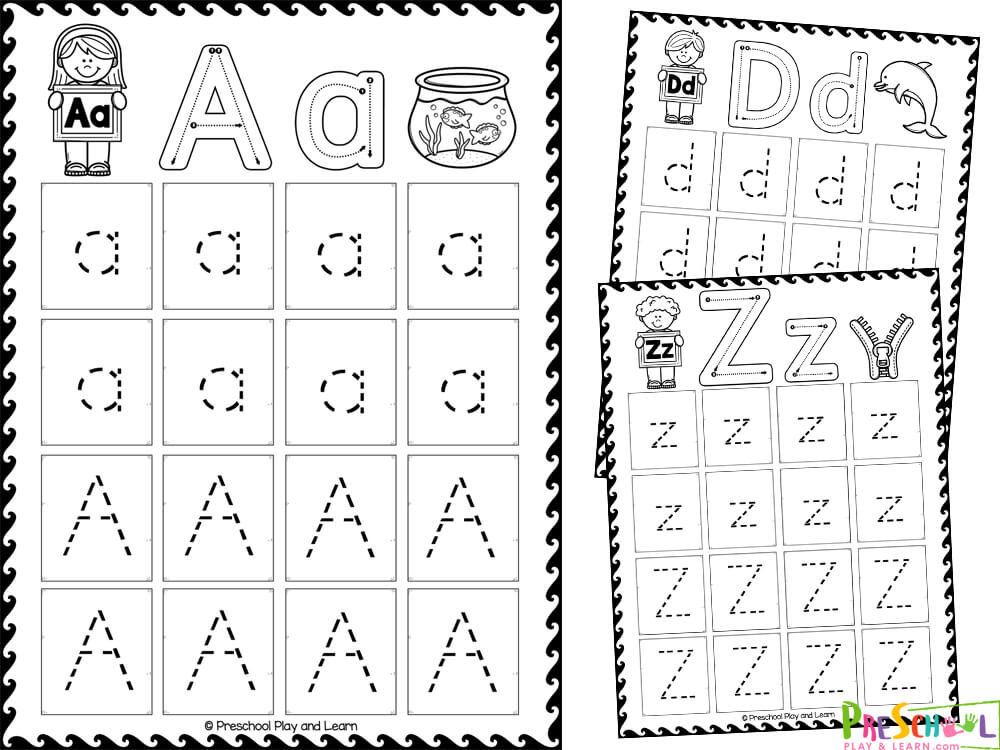A to Z Letter Tracing Worksheets Handwriting Practice With Without