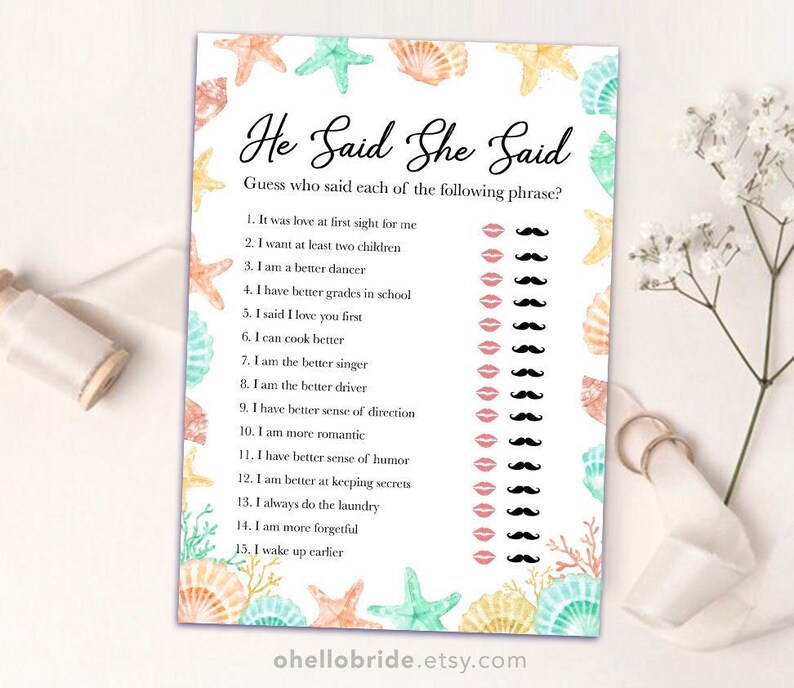 He Said She Said Bridal Shower Game (Printable) Culture Weddings