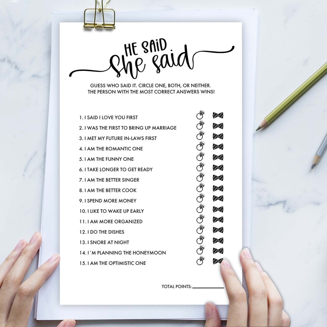 He Said She Said Game Printable Bridal Shower Game Guess Who Said