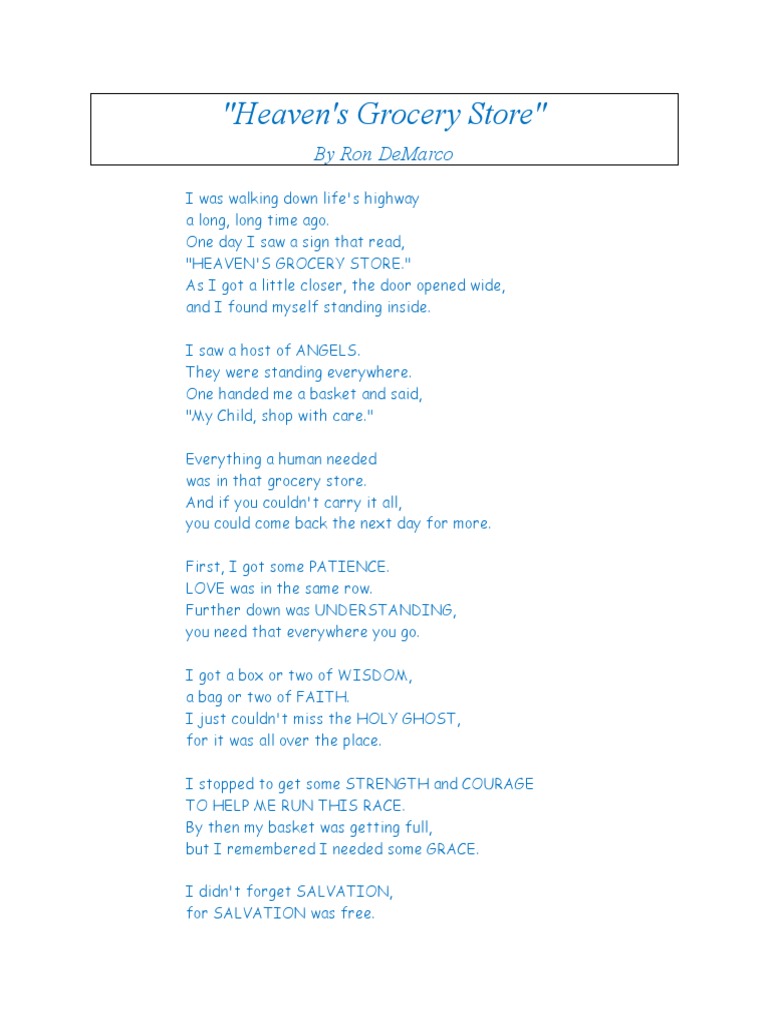 Heaven #39 s Grocery Store Poem Printable Printable Templates Online By