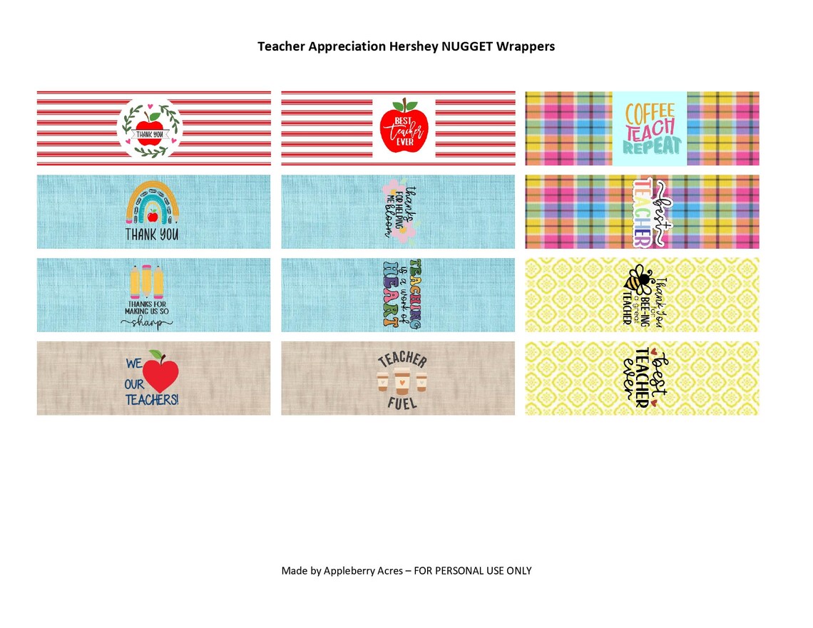 Teacher Appreciation Hershey NUGGET Wrappers Etsy