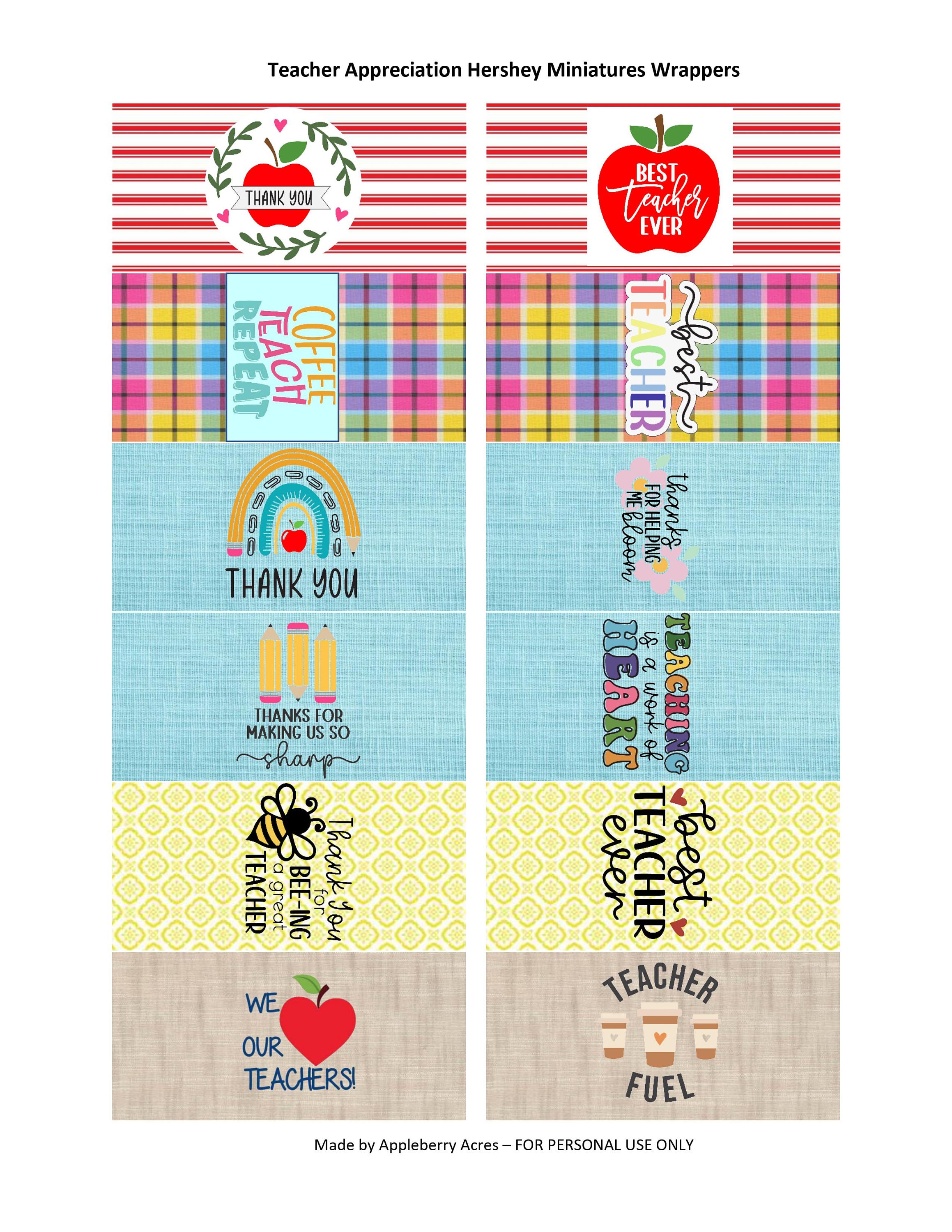 Teacher Appreciation Hershey Miniatures Wrappers Etsy