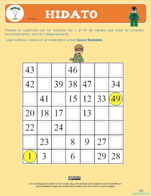 Juego Hidato 01 Ficha interactiva TopWorksheets