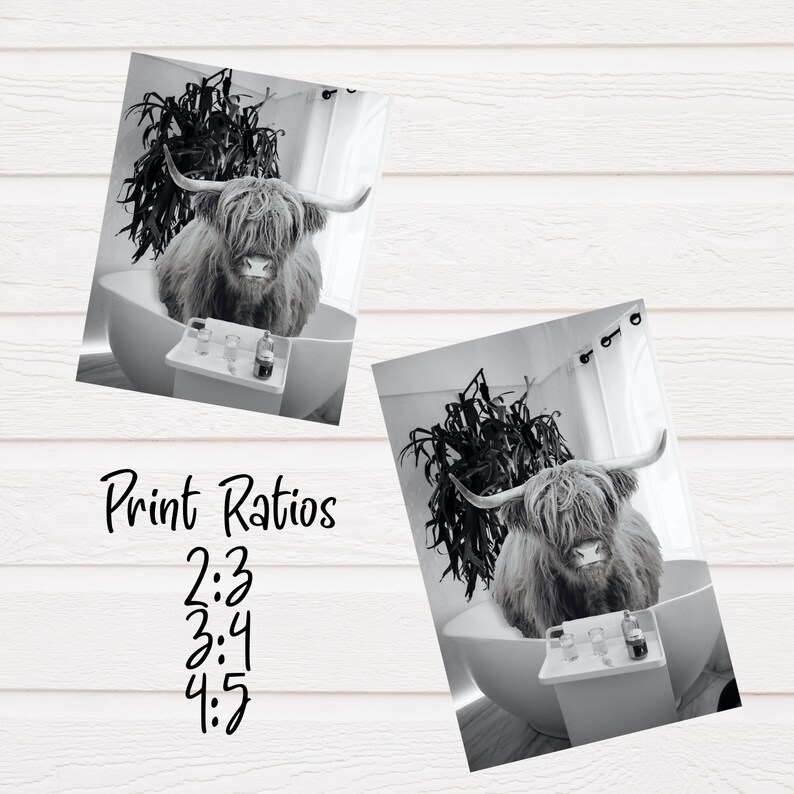Highland Cow in Bathtub Printable Wall Art Farmhouse Bathroom Etsy
