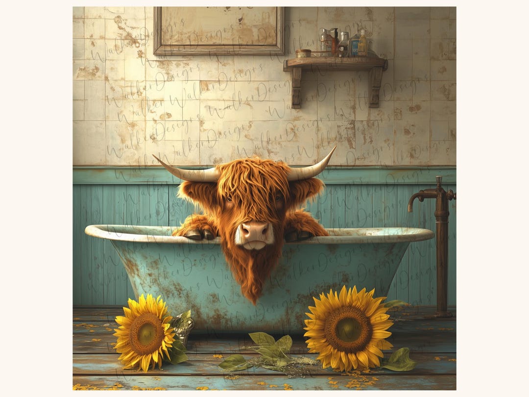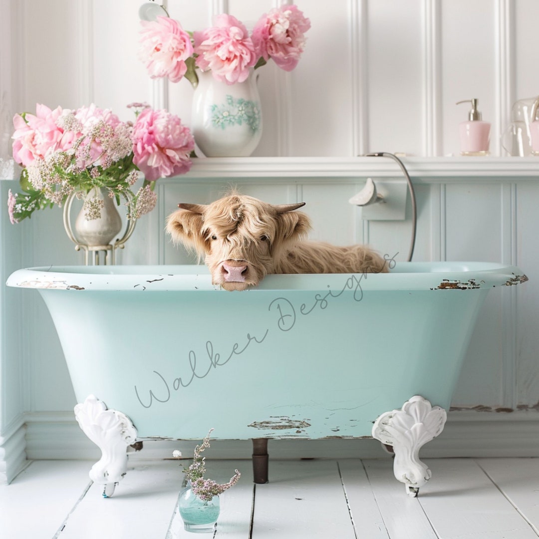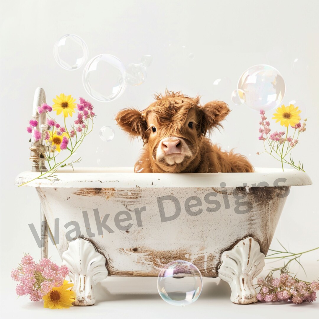 Highland Cow in Bathtub Printable Etsy