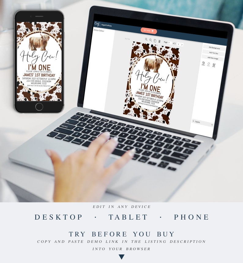 Editable Boys Highland Cow Birthday Party Printables Instant Etsy