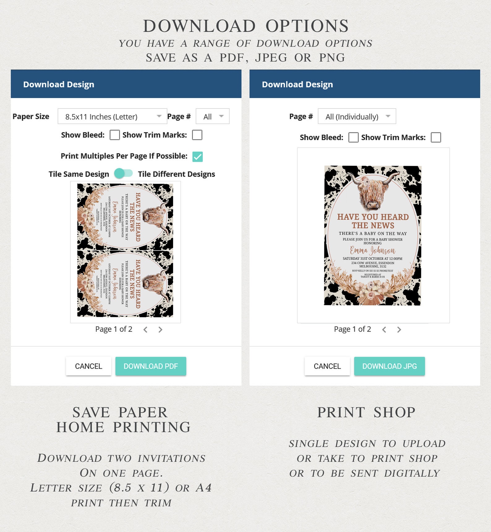 Editable Highland Cow Baby Shower Bundle Printables Boho Cow Etsy