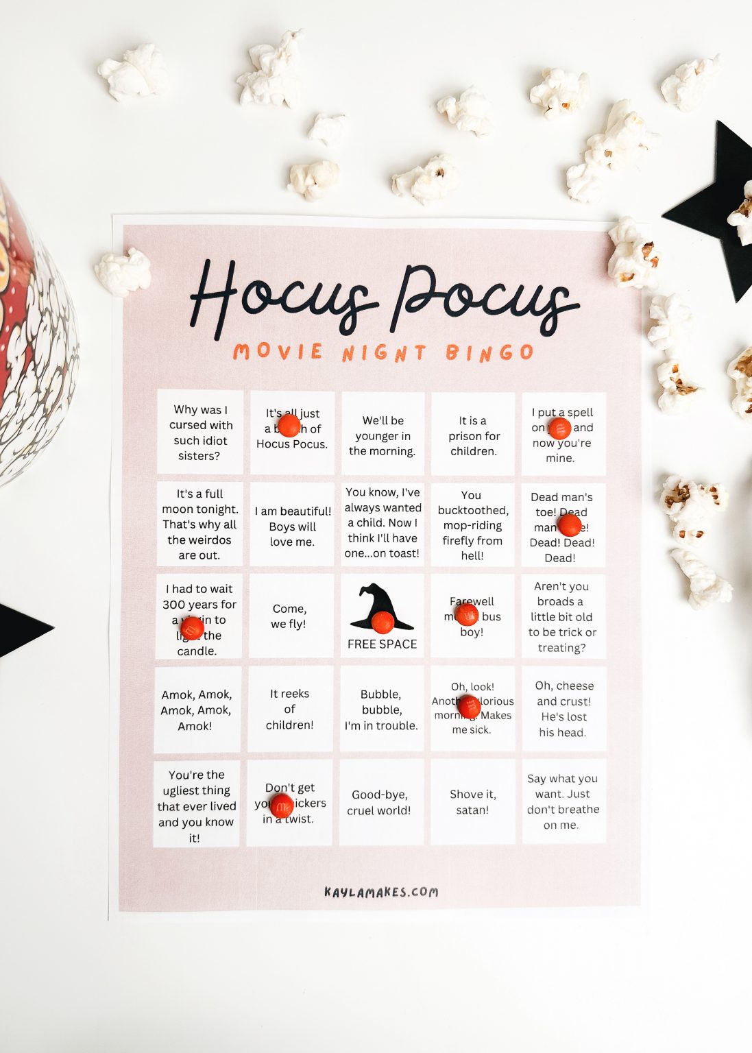 Hocus Pocus Movie Night Bingo Free Printable Kayla Makes 47% OFF