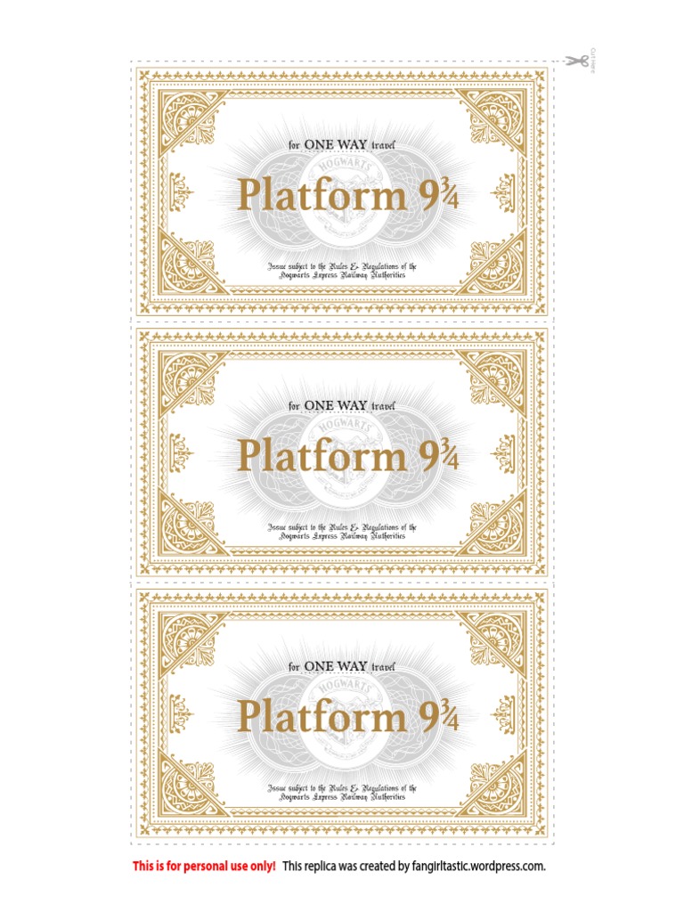 Train Ticket Harry Potter 10 Free PDF Printables Printablee Harry