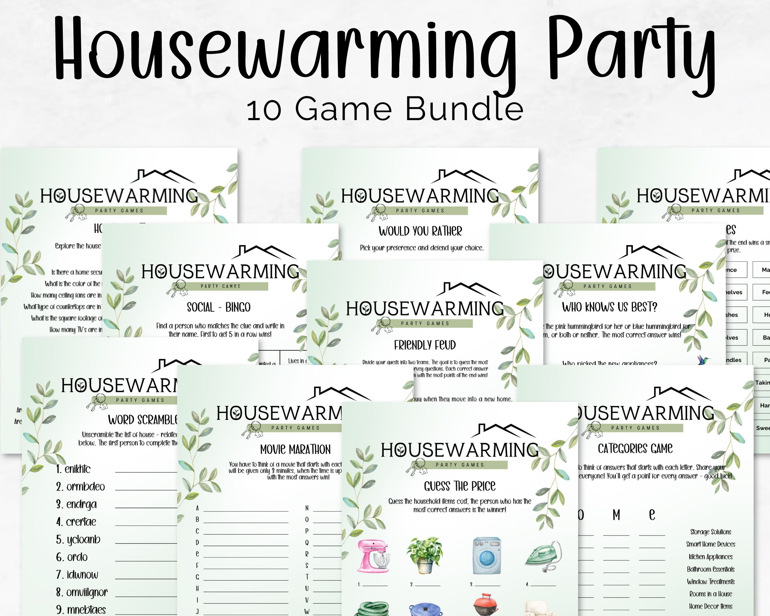 Housewarming Games Printable Bundle Housewarming Group Games