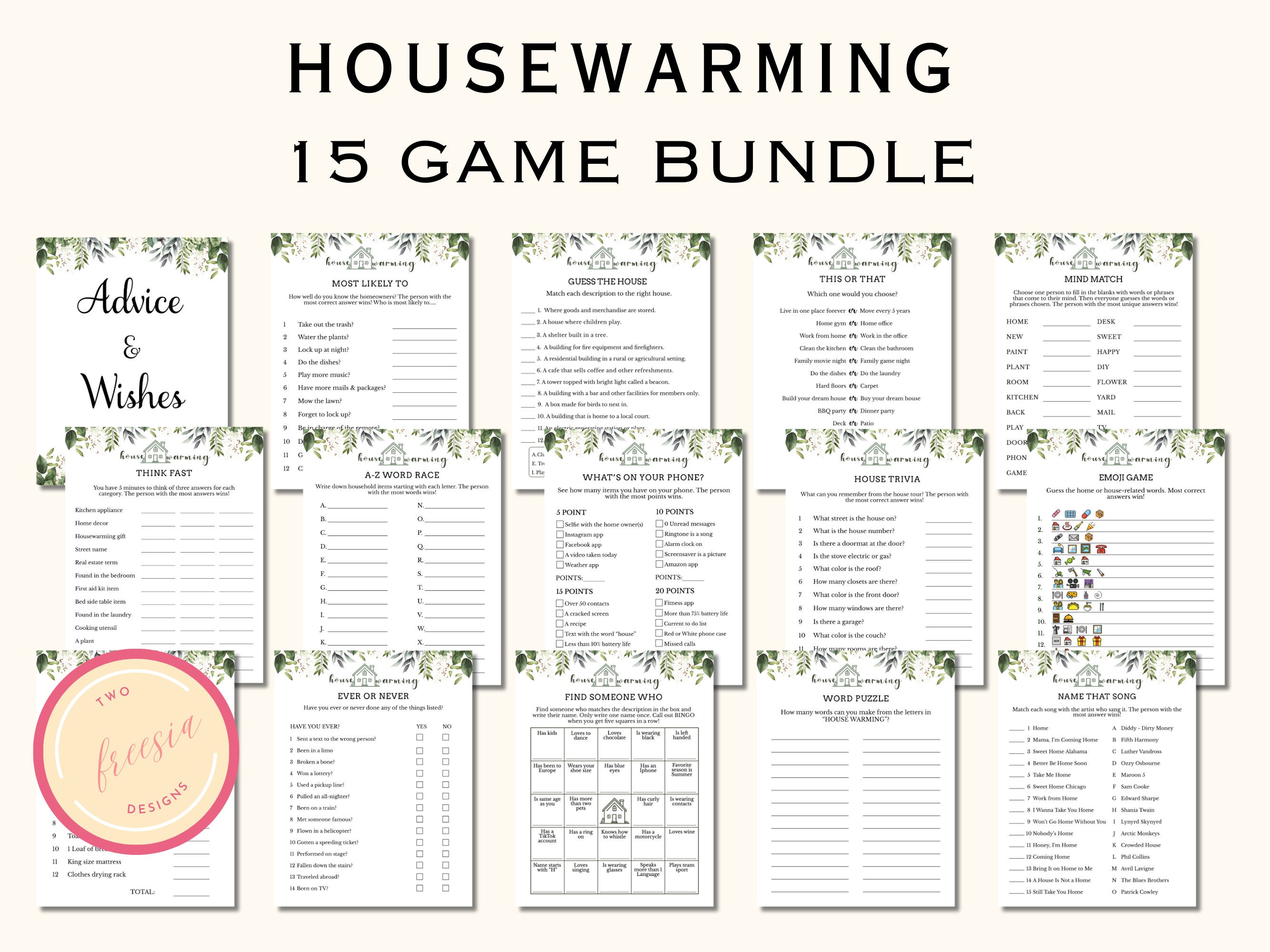 Housewarming Party Games Bundle Printable Worksheets Library