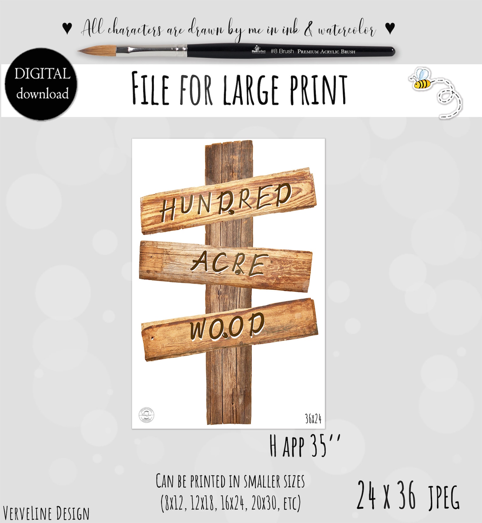 PERSONALIZED Digital Sign/ Wood Signage Hundred Acre/ Digital Printabl