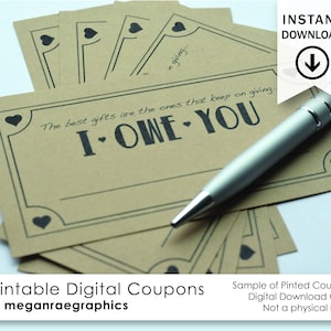 Printable Digital i OWE You Coupon for Birthdays Valentines Day