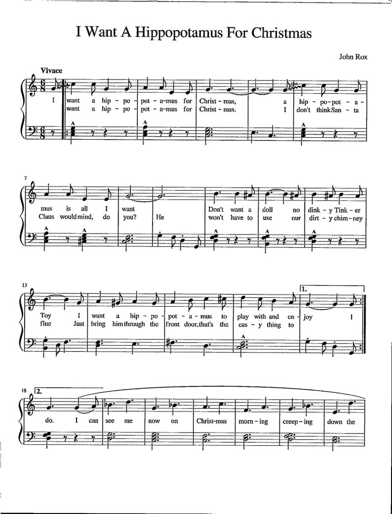 John Rox quot I Want A Hippopotamus For Christmas (Hippo The Hero) quot Sheet