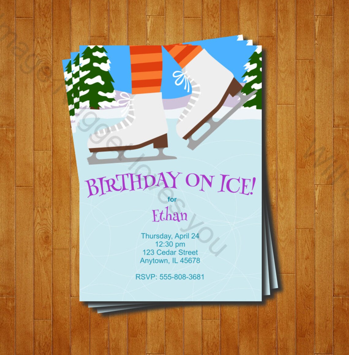 Ice Skating Party Invitation Printable Birthday Invite for an Ice