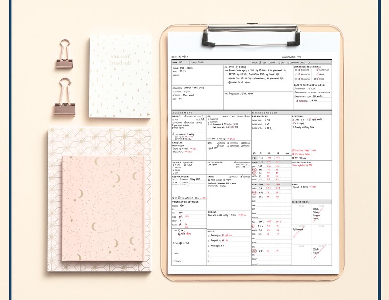 Printable ICU Nurse Report Sheet Template Nursing Report Med Etsy